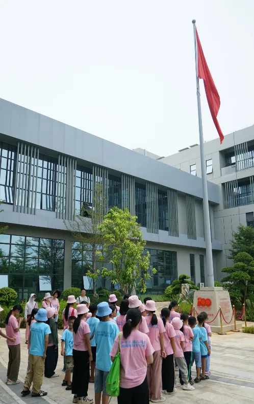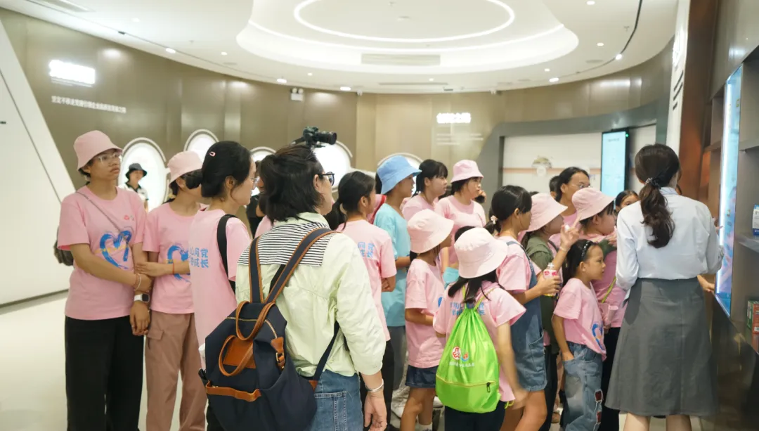 紧接着,孩子们来到了建党百年庆典红旗——070号红旗前。讲解员讲述了泛亚电竞药业集团与庆典红旗的深厚渊源。孩子们听得津津有味,眼中闪烁着对党和国家的热爱与敬仰。